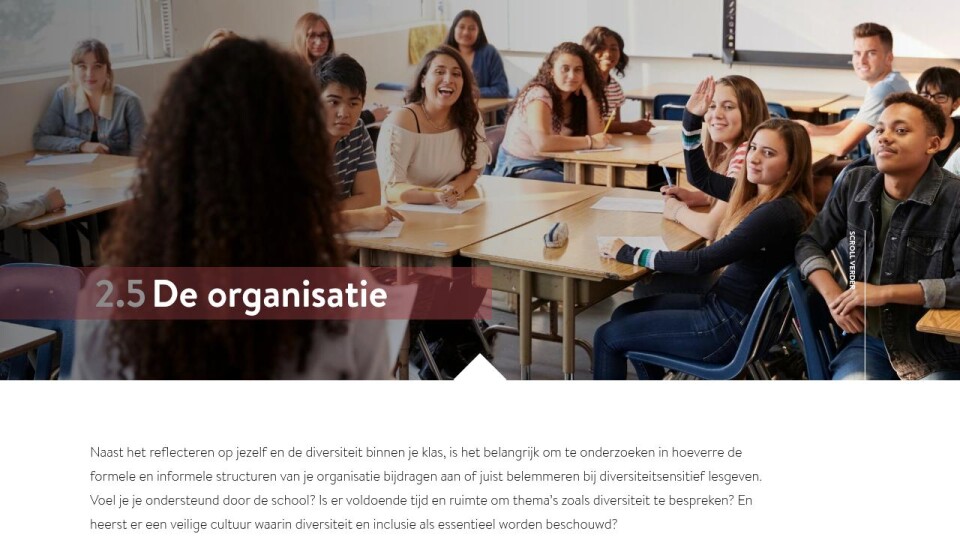 Naast het reflecteren op jezelf en de diversiteit binnen je klas, is het belangrijk om te onderzoeken in hoeverre de formele en informele structuren van je organisatie bijdragen aan of juist belemmeren bij diversiteitsensitief lesgeven. Voel je je ondersteund door de school? Is er voldoende tijd en ruimte om thema’s zoals diversiteit te bespreken? En heerst er een veilige cultuur waarin diversiteit en inclusie als essentieel worden beschouwd?