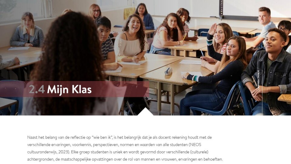 Naast het belang van de reflectie op “wie ben ik”, is het belangrijk dat je als docent rekening houdt met de verschillende ervaringen, voorkennis, perspectieven, normen en waarden van alle studenten (NEOS cultuuronderwijs, 2023). Elke groep studenten is uniek en wordt gevormd door verschillende (culturele) achtergronden, de maatschappelijke opvattingen over de rol van mannen en vrouwen, ervaringen en behoeften. Door deze diversiteit te herkennen en te begrijpen, kun je een leeromgeving creëren waarin alle studenten zich gezien, gewaardeerd en veilig voelen. Hiernaast stelt het je in staat om inclusief lesmateriaal te gebruiken, passende werkvormen te kiezen en bewust om te gaan met eventuele vooroordelen – zowel die van jezelf als die binnen de groep. Dit helpt studenten niet alleen in hun eigen leerproces, maar bereidt hen ook voor om als sociaal professional diversiteitsensitief te werken en inclusie in de praktijk te bevorderen.