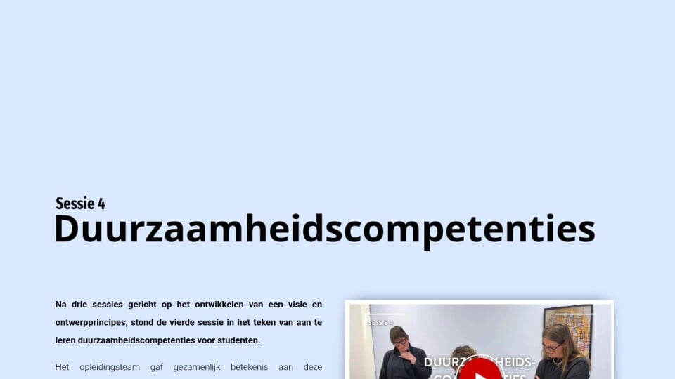 De analyse resulteerde in een heldere set duurzaamheidscompetenties en bood waardevol inzicht in de huidige verankering ervan binnen het onderwijs. Dit vormt een belangrijke basis voor de verdere integratie van duurzaamheidscompetenties in de opleiding.