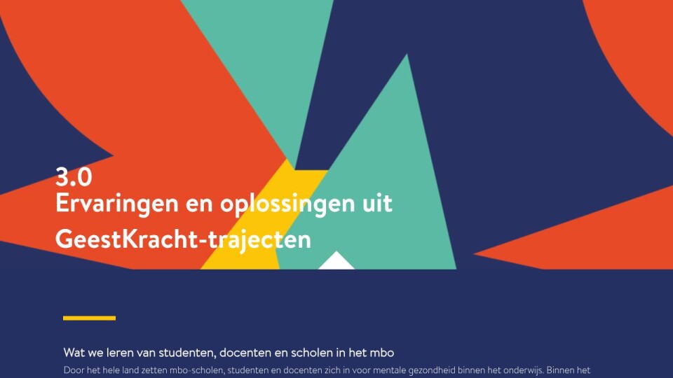 Door het hele land zetten mbo-scholen, studenten en docenten zich in voor mentale gezondheid binnen het onderwijs. Binnen het GeestKracht-project ontstaan waardevolle initiatieven, waarin studenten zelf het voortouw nemen. Zij ontwikkelen verbeterideeën, voeren acties uit en maken mentale gezondheid bespreekbaar op hun eigen school.
