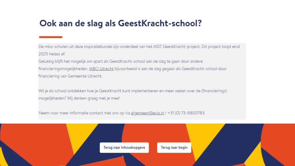 De mbo-scholen uit deze inspiratiebundel zijn onderdeel van het MDT GeestKracht-project. Dit project loopt eind 2025 helaas af.