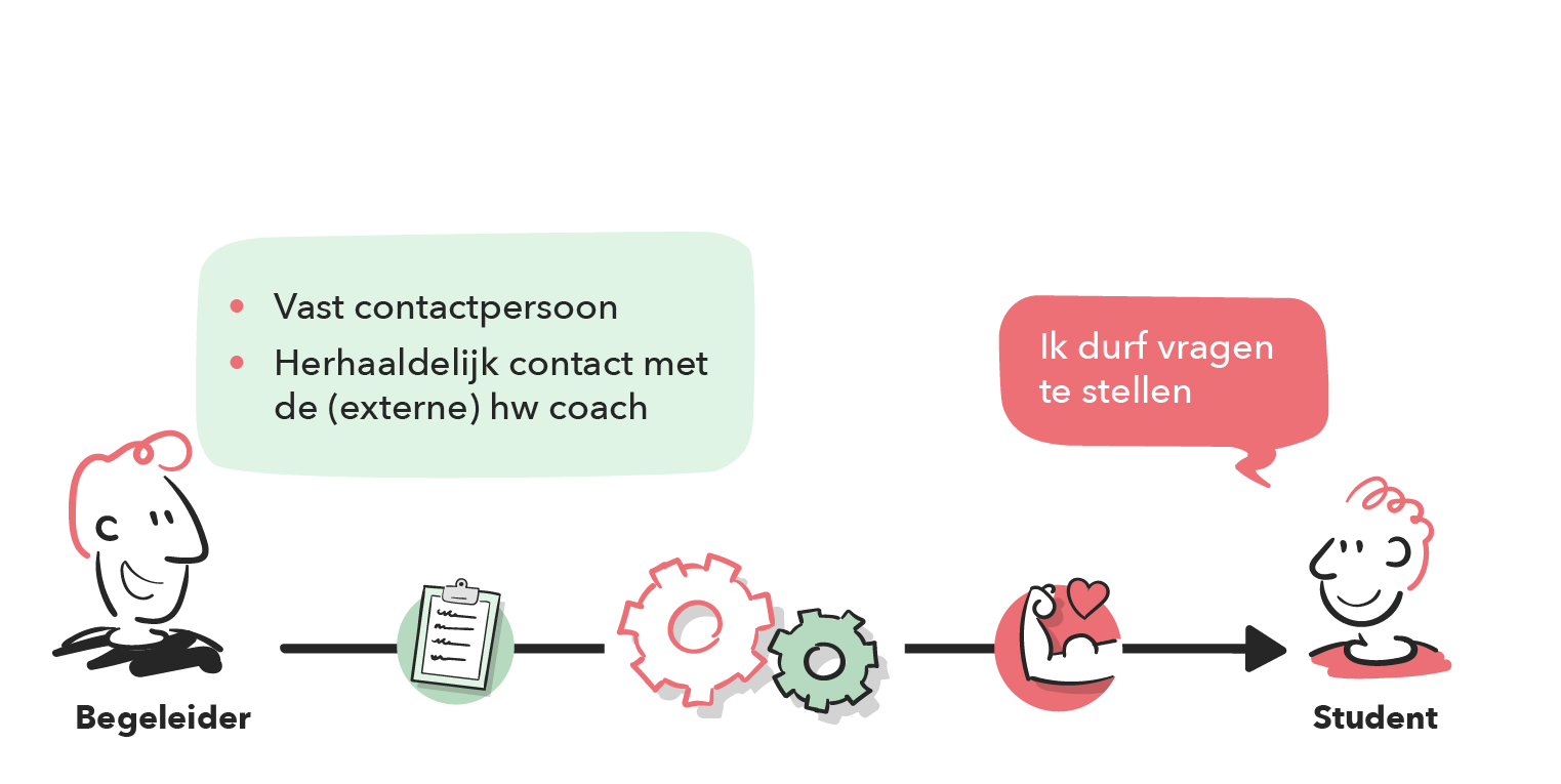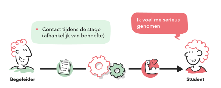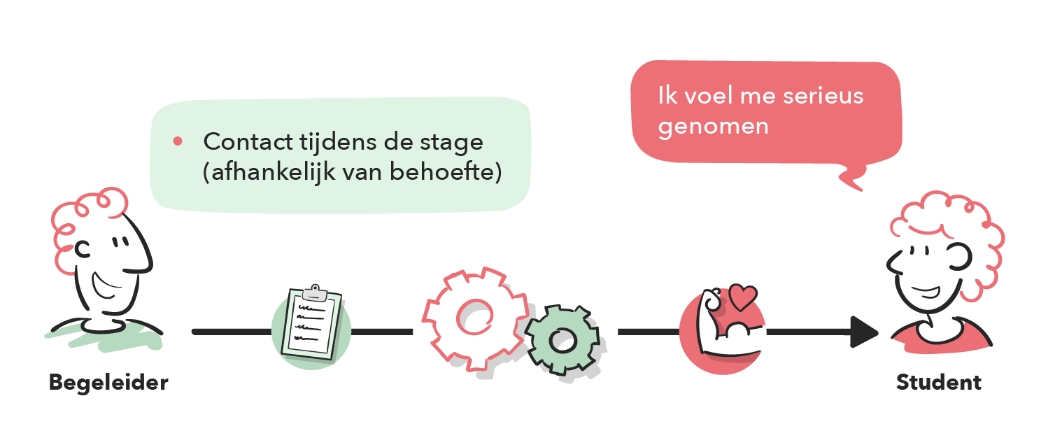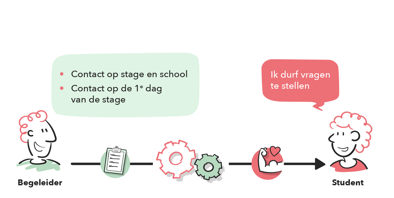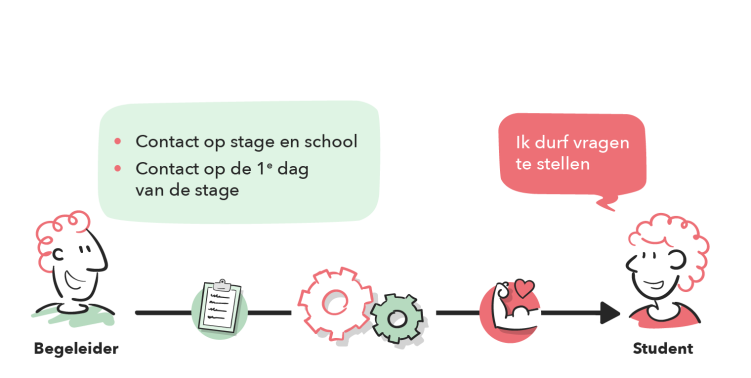 Vast aanspreekpunt. Zorg dat studenten één herkenbaar contactpersoon hebben op school en stage, zodat altijd duidelijk is bij wie zij terechtkunnen.