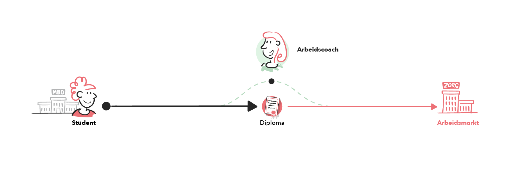Het doel van deze aanpak is om studenten te helpen de overstap naar werk of vervolgopleiding succesvol te maken. Door tijdige en persoonlijke begeleiding krijgen studenten meer overzicht, zelfvertrouwen en praktische handvatten om zelfstandig keuzes te maken. Zo wordt uitval verminderd en wordt de duurzame participatie van mbo-studenten op de arbeidsmarkt vergroot.